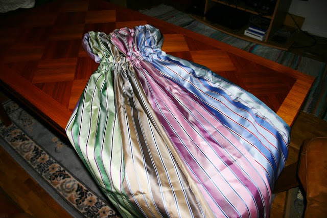 After being cranky for a bit, I ended up doing something a lot less useful, but very very pretty instead. On Friday, after the final exams in my Japanese classes, I went thrift shopping! I found a few great things, among them this wonderful silky fabric that looked like a whole rainbow... for 10SEK (thats about 1,5 USD)!!!